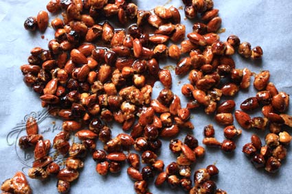 2. Ajoutez alors les noisettes et les amandes. Petit à petit, elles vont se couvrir d’une pellicule blanche. On dit que le sucre sable.