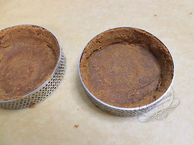 3. Répartissez la préparation dans des cercles à tartelettes posés sur une plaque recouverte de papier cuisson. Tassez avec le dos d’une cuillère.
