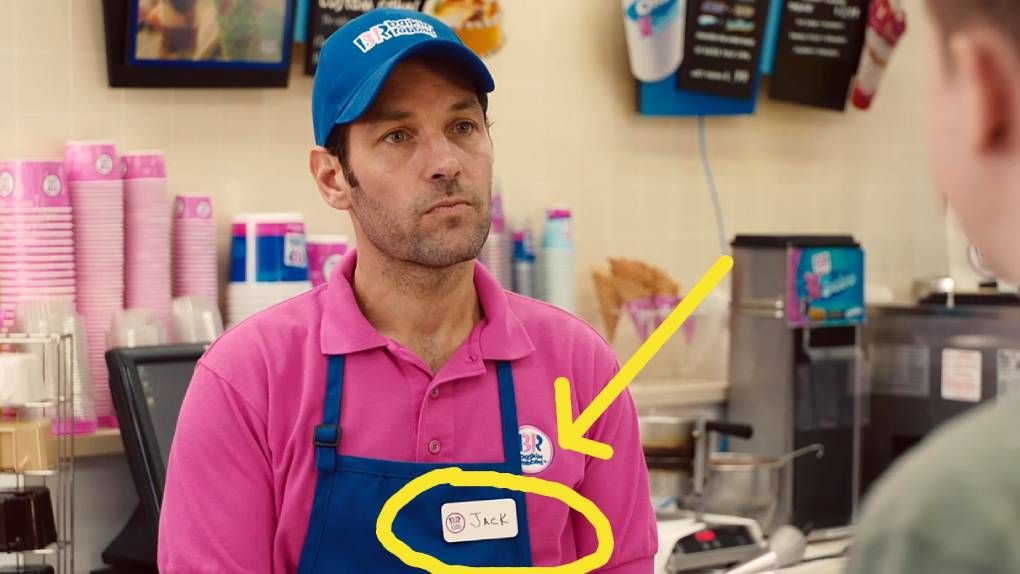 Scott porte sur son tablier le prénom « Jack » et appelle son collègue « Darby ». Jack et Darby sont les prénoms des enfants de Paul Rudd, interprète de Scott Lang.