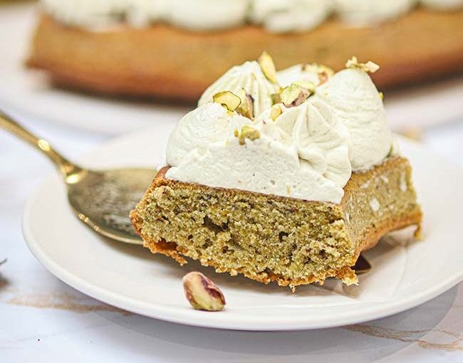 La recette en vidéo est ici : Gâteau pistache en vidéo.