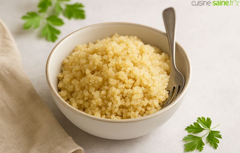 Vous me demandez souvent comment cuire du quinoa pour une salade de midi. Mon astuce : respectez le ratio eau/quinoa et laissez reposer quelques minutes hors du feu, couvercle fermé, pour que l’humidité se répartisse. Pour un quinoa cuit bien détaché, j’aime égrainer à la fourchette comme on le ferait avec de la semoule.