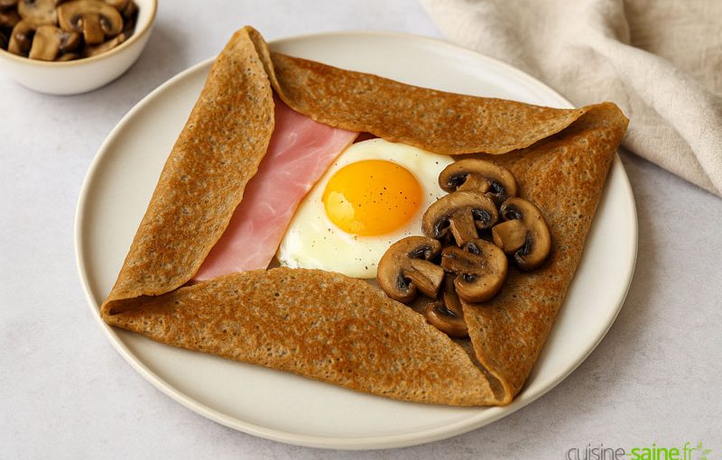 Je reviens toujours à la Bretagne quand j’ai envie d’une crêpe salée croustillante, fine et bien parfumée : la recette de la galette au sarrasin. Le sarrasin (ou blé noir) a ce goût de noisette qui met instantanément en appétit. Bonne nouvelle : il est naturellement sans gluten. Et pour rester sans lactose, j’utilise simplement de l’eau ou une boisson végétale neutre. Vous allez voir, la recette de la galette au sarrasin est à la fois simple et technique : simple dans les ingrédients, technique dans les petits gestes qui font la différence.