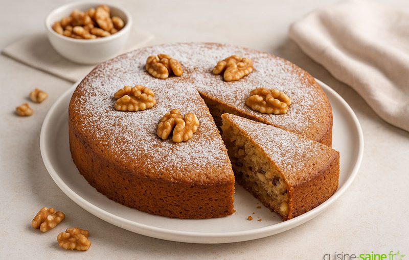 - Sans sucre ajouté : remplacez le sucre par 3 c. à s. de sirop d’érable et réduisez légèrement l’huile. Vous obtiendrez un gâteau aux noix naturellement sucré et plus léger.