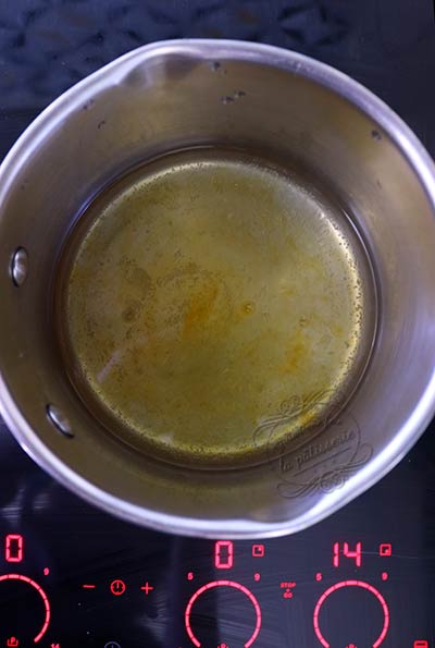 5 minutes avant la fin de la cuisson du gâteau, commencez le sirop.