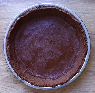 3. Versez la préparation dans un moule à tarte 22 cm. Tassez bien avec le dos d’une cuillère à soupe.
