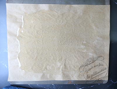 2. Versez le sucre cuit sur une plaque recouverte de papier cuisson. Laissez refroidir à température ambiante, jusqu’à ce que le sucre durcisse.