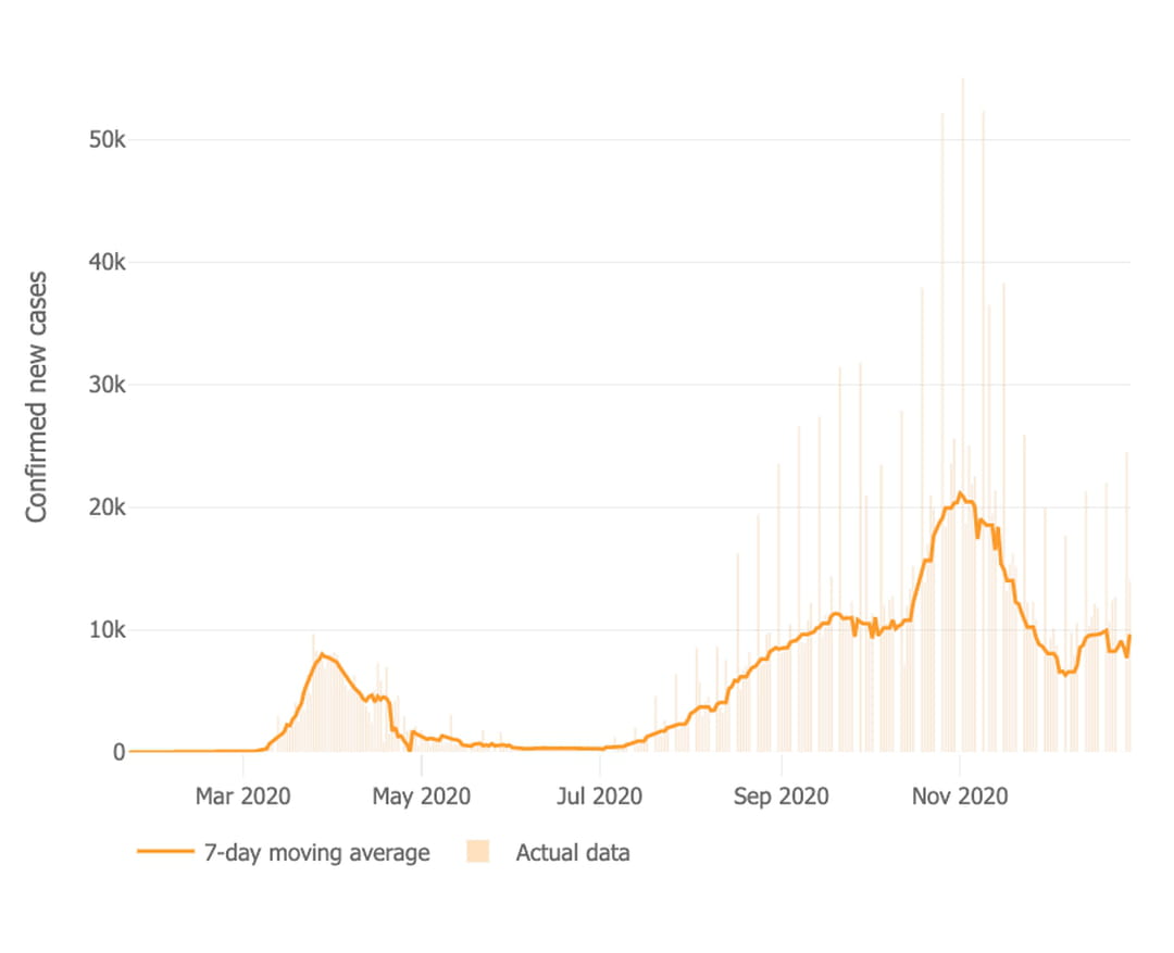 Evolution des nouveaux cas de Covid-19 en Allemagne, par jour au 30 décembre.