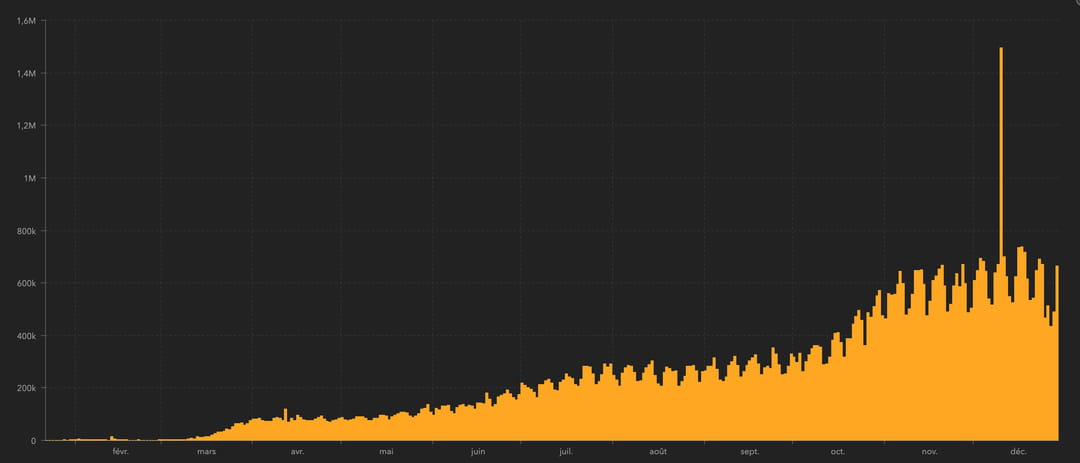 Evolution des nouveaux cas de Covid-19 aux Etats-Unis, par jour au 30 décembre.