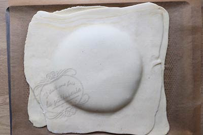 5. Refermez avec le second carré de pâte feuilletée en appuyant sur les bords du bout des doigts.