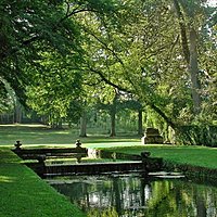 L’Allée d’arrivée bordée par deux canaux plantés de platanes centenaires est majestueuse. 75 hectares, 17 pièces d’eau alimentées par les 14 sources d’eau « courantes », un jardin japonais, un parc à l’esprit « français » imaginé par les Duchêne au début du XX ème siècle, un sous-bois de fougères, un vrai bonheur pour les amateurs de jardin, qui sauront apprécier les statues de pierre qui se fondent dans les platanes et les buis arborescents. Perspectives de camaïeux de verts, reflets des arbres sur le miroir de l’eau, gouttes d’eau que l’on entend sourdre des sources secrètes, senteurs marquées des buis après l’ondée, odeurs de l’herbe fraîchement coupée. Prenez le temps de vous imprégner de cet endroit unique.
